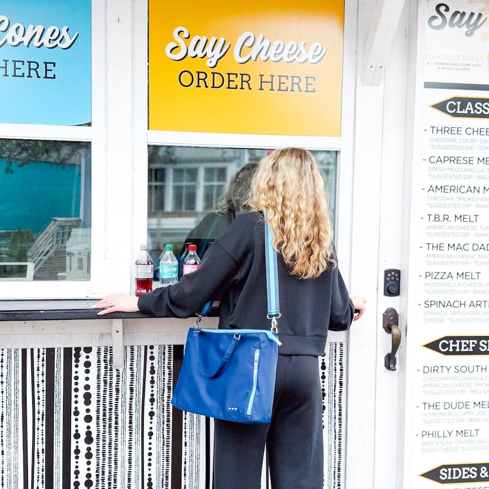 This must have tote is perfect for everyday, stylish use. This tote features an exterior zipper pocket with a correlating zipper lining color, an adjustable and removable strap with correlating colors, a handle for carrying, and so many interior pockets.